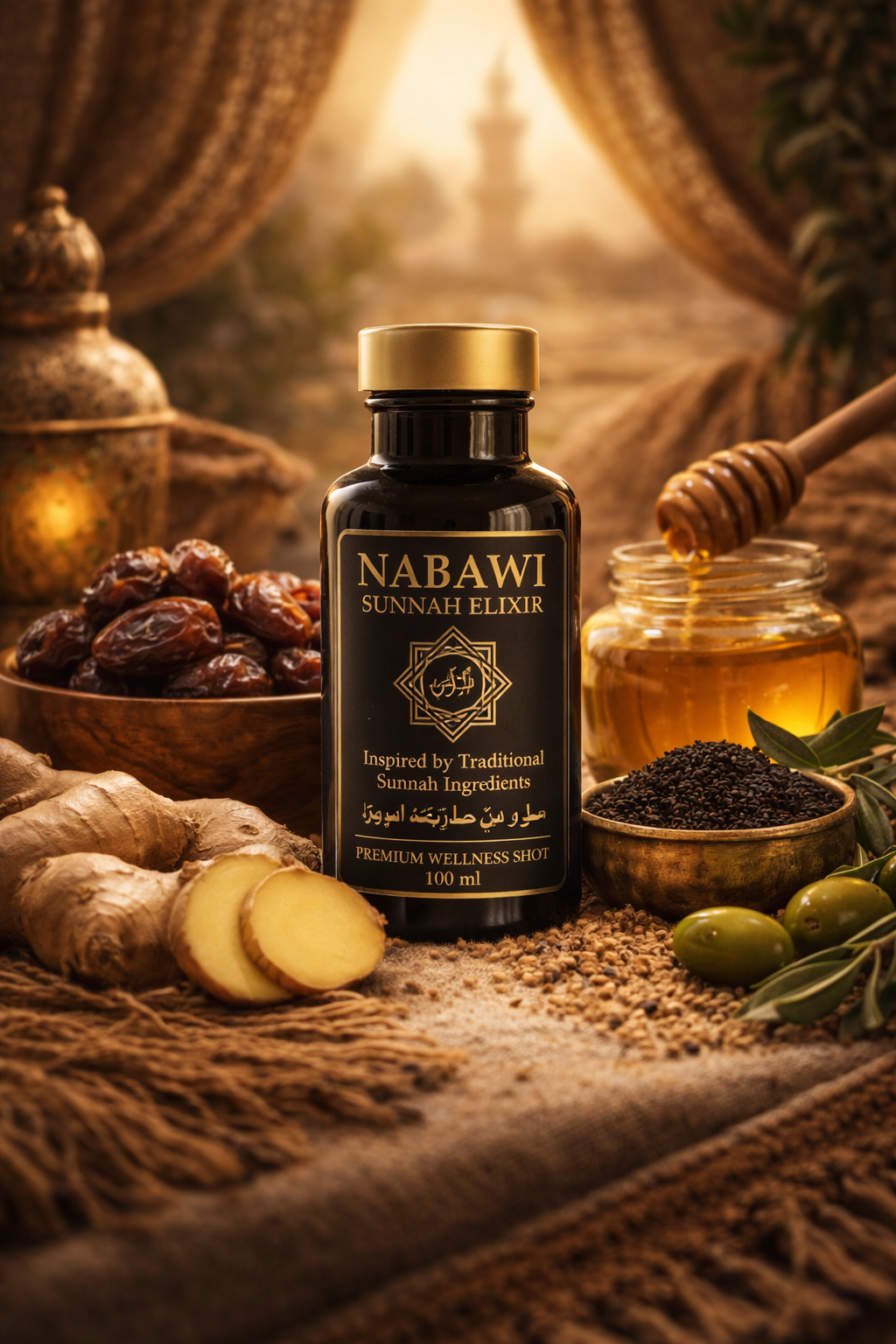 NABAWI ist ein Premium‑Elixier, das Tradition und moderne Innovation vereint. Entwickelt für Menschen, die Reinheit, Qualität und ein bewusstes Ritual in ihren Alltag integrieren möchten.